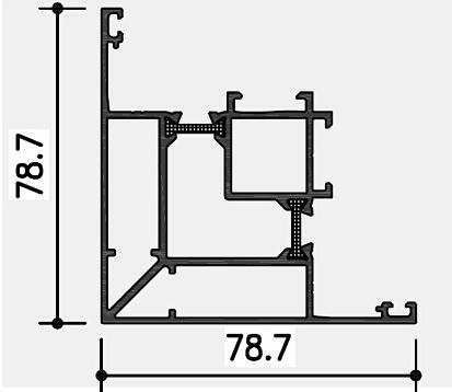 在门窗幕墙的设计过程中,会遇到一些阴、阳角位置,在这个位置的隔热型材设计时,有的是采用两根框料的拼接来完成,也有的设计一根隔热型材,使得隔热型材中的两根隔热条互成一定角度(如下图所示),这样来完成阴、阳角过渡。