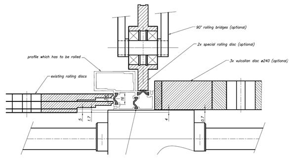 为解决上述问题,提高该铝型材的生产效率,就需要对隔热铝型材加工设备中滚压设备进行局部改造升级,也就是在滚压设备上增加90度滚压装置及相关辅助设施。