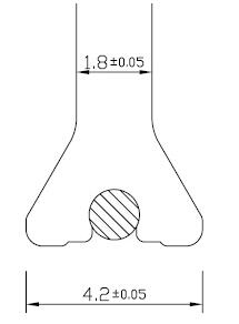 先表面处理后复合的隔热型材对隔热条的要求是:满足尺寸精度、强度等常规要求,隔热条头部如图3所示;而先复合后表面处理的隔热型材对隔热条的要求除了上述的常规要求外,还必须要保证隔热型材在表面处理过程后,其强度必须满足GB 5237.6的相关要求,隔热条头部如图4所示,应带热熔胶线。
