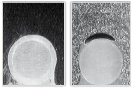 图为:常规隔热条头部与带热熔胶线隔热条头部截面对比