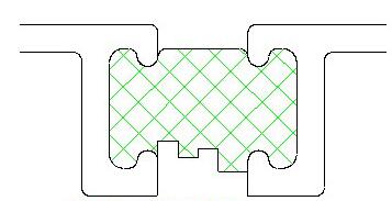 4. 如果注胶后发现纵向剪切不足时,应当考虑使用打齿机(也称之为开齿机),在槽口内的锁点上打出均匀的波纹或锯齿,可以提高铝型材的纵剪值。