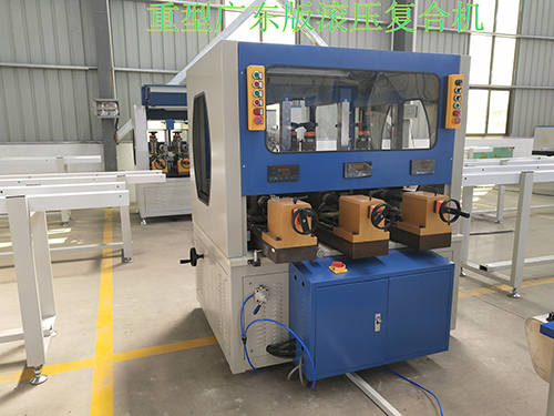 用3组硬质滚压轮,将开完齿并穿好隔热条或塑料异型材的铝型材压合牢固。